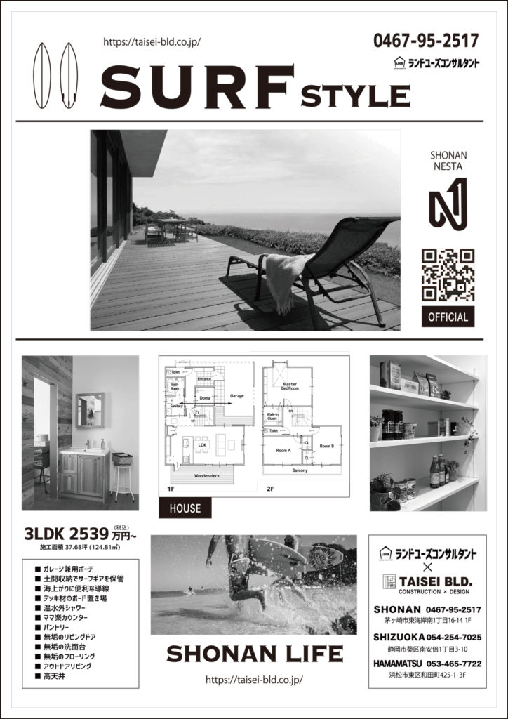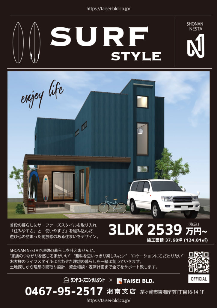 普段の暮らしやすさにサーファーズスタイルを取り入れ「住みやすさ」と「使いやすさ」を組み込んだ遊び心の詰まった開放感のある住まいをデザイン。